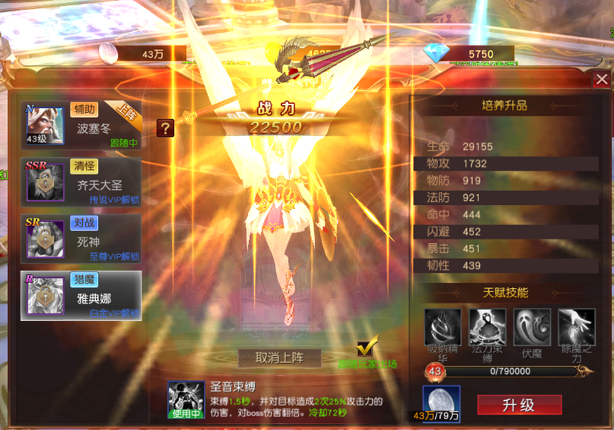 在诸神殿中每位神将都可以单独升级,从而提升侍将自身的攻击和血量等战斗属性,并且不同神将所需的升级材料各不相同,玩家在提升时不需要考虑分配资源的问题。